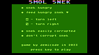 Smol snek is a game I started working on early October last year. I got motivated to write this game by watching a fellow atari geek on twitch, writing a Snake game in Atari BASIC. Around the same tim...